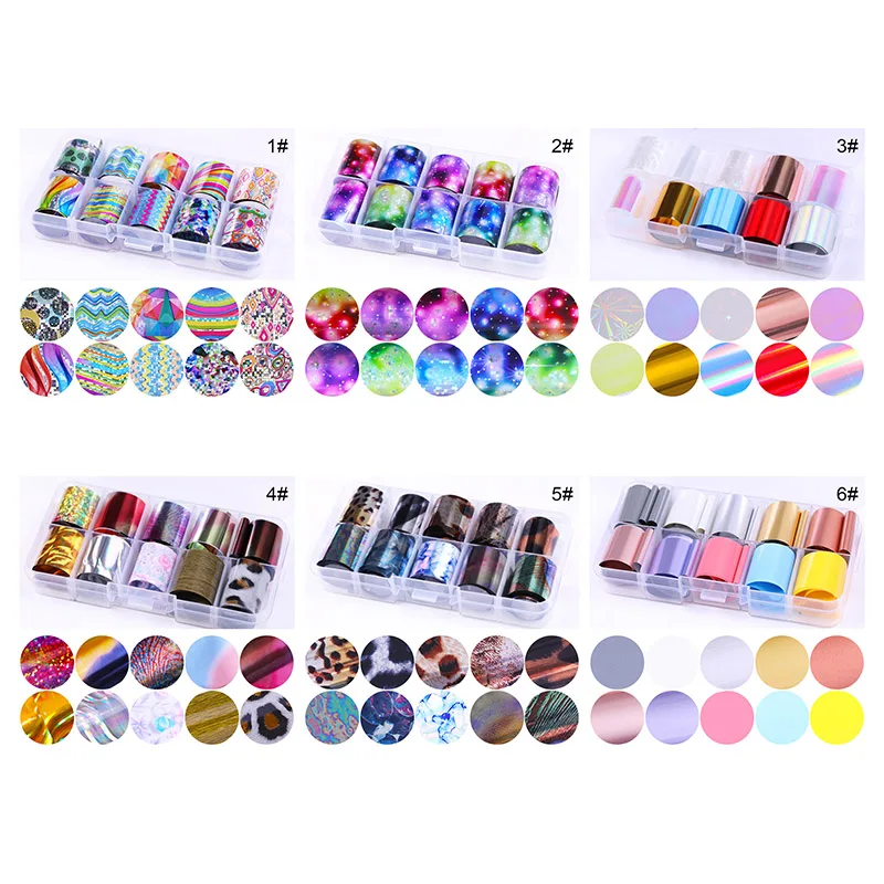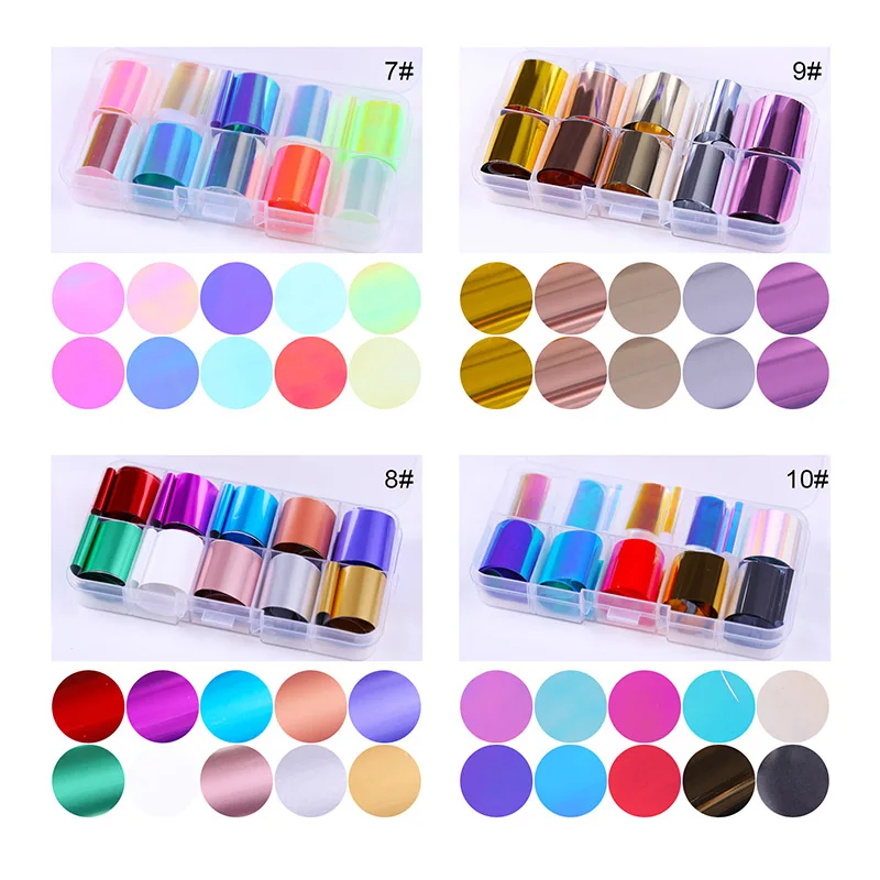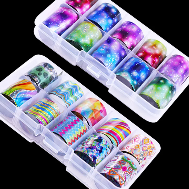 amazing 10 Rolls/Box Holographic Nail Foil Starry Sky Glitter Candy Nail Art Transfer Stickers Nail Art Tip
