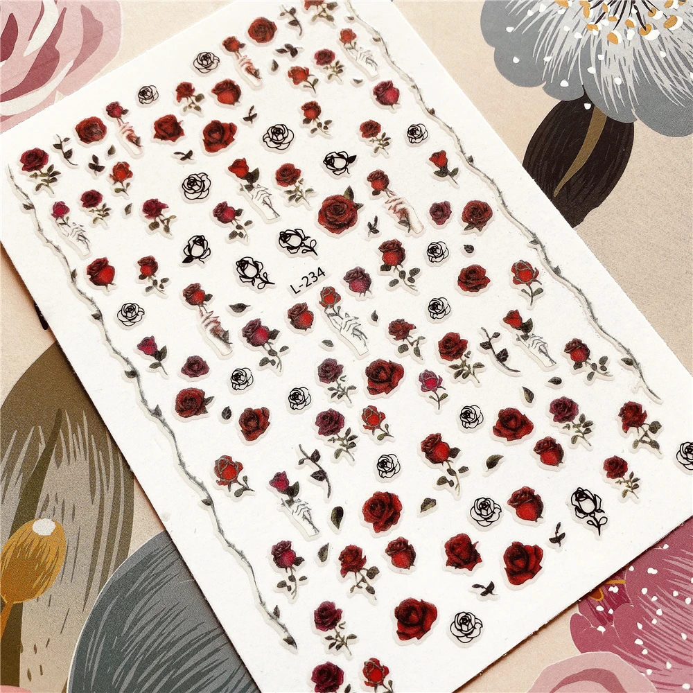 astounding L-234-267-268 Rose Flower 3D Back glue Nail decal Nail sticker Nail decoration Nail art Nail tool N