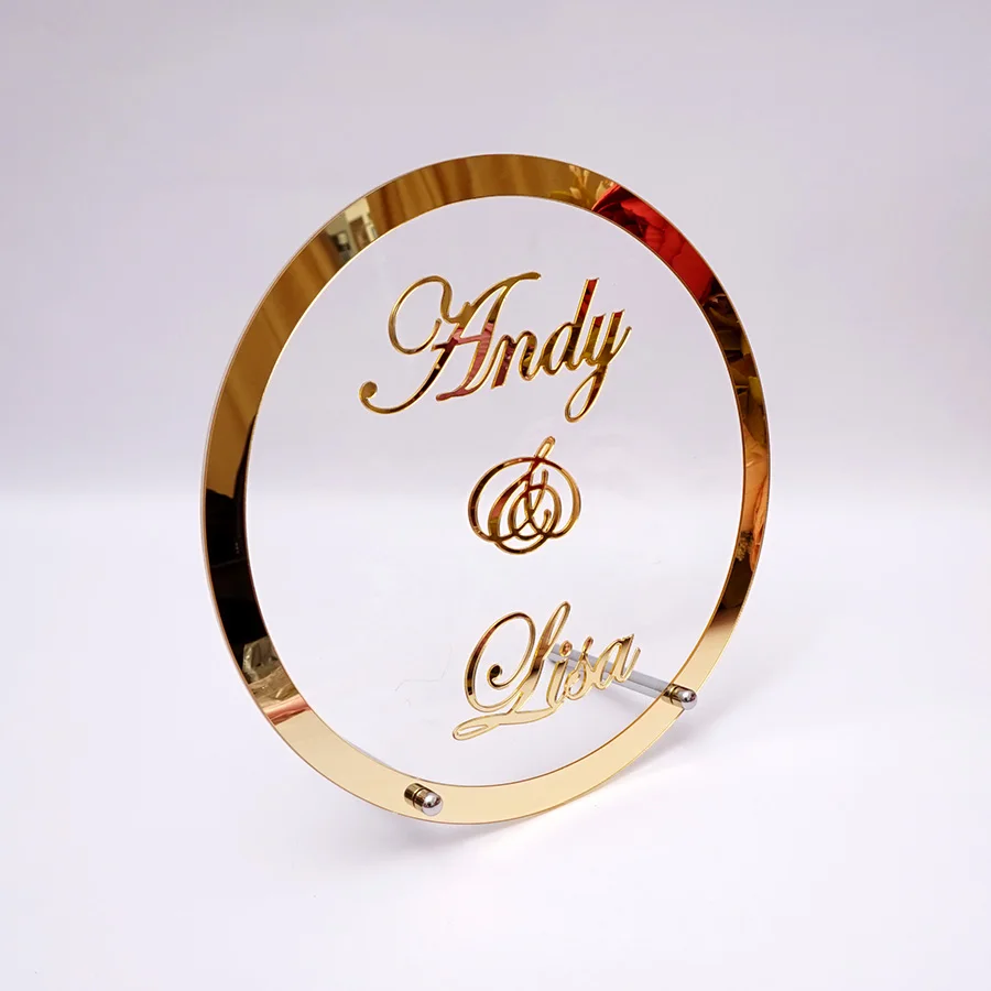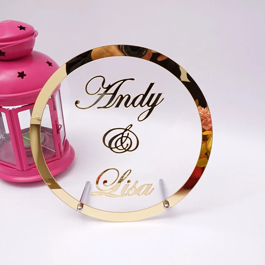 astounding Round Custom Wedding Name Mirror Frame Acrylic Sticker Babyshower Word Sign Circle Shape Party Deco