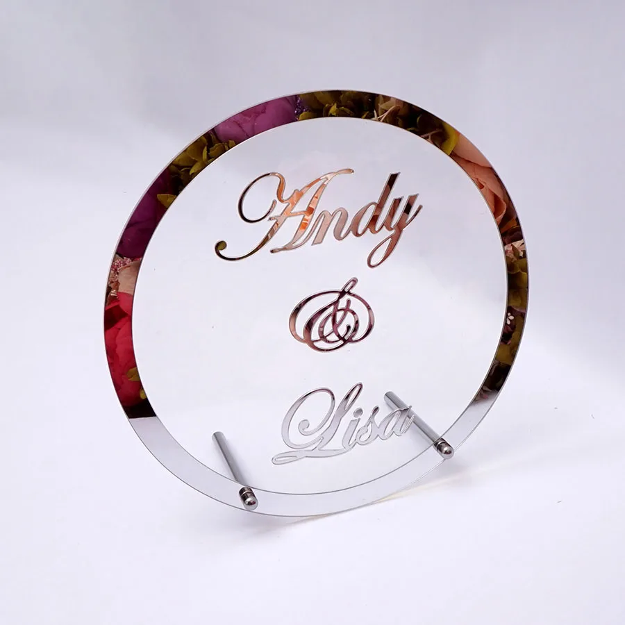 amazing Round Custom Wedding Name Mirror Frame Acrylic Sticker Babyshower Word Sign Circle Shape Party Deco