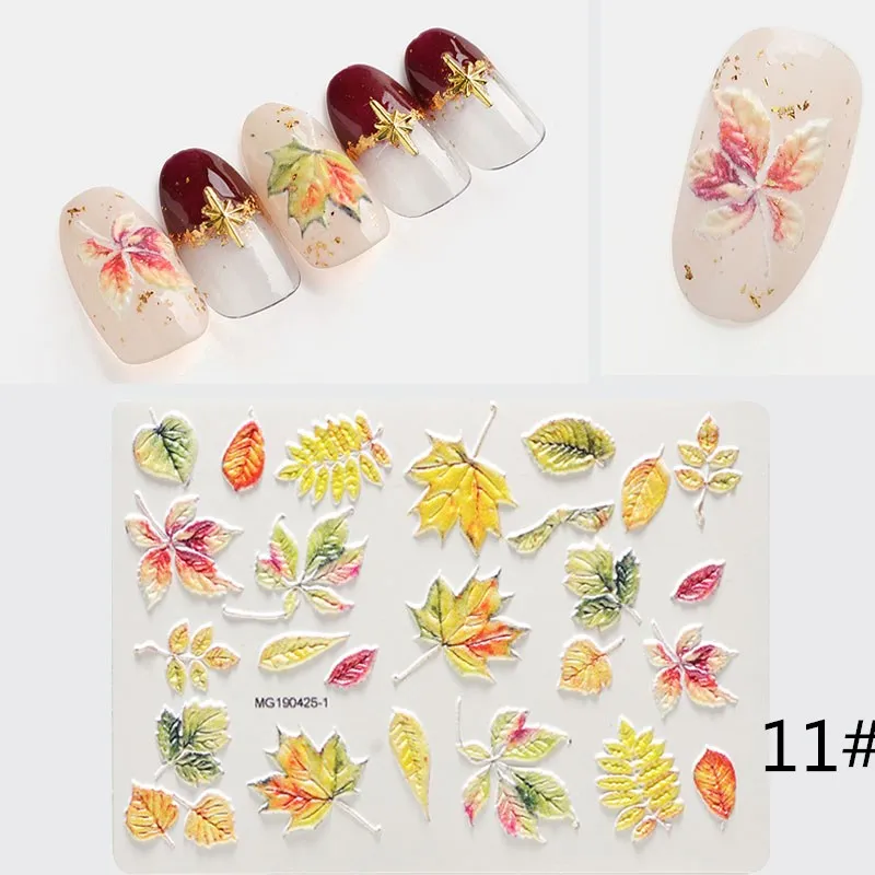 Finest 1pc 3D Acrylic Engraved Flower Nail Sticker Rose Maple Leaf Dessert Nail Water Decals Fashion Empai