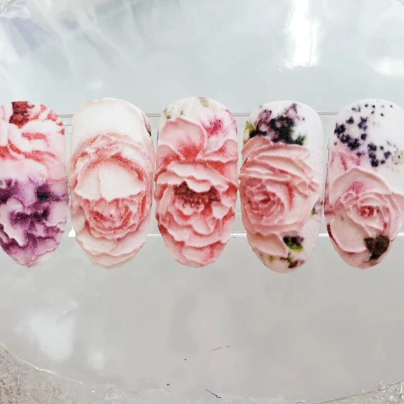 Ideal 3D new Acrylic Engraved Nail Sticker black line WHITE PINK FLOWER design Water Decals Empaistic Nai