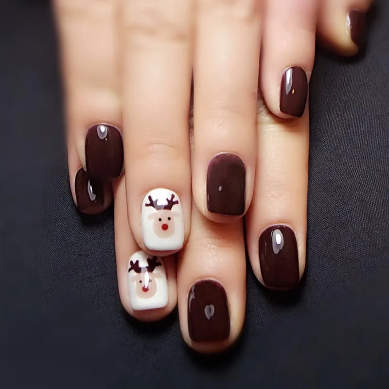 low cost 24 pcs Brown Press On Fake Nails With Cute Carton Designs Short Kawaii False Nail Tips Artificial F