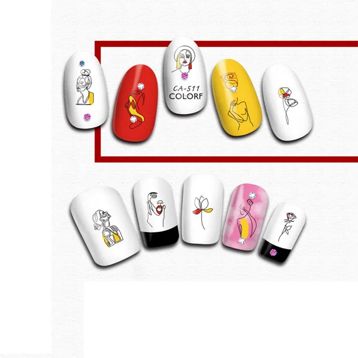 3 sheets Nail Water Decals Cartoon Animal Transfer Stickers Abstract Image Geometry Linear Nail Art Slider Sticker Decoration,11/12patterns/sheet Black Line Coloful Abstract Image Nail Sticker Decals Sexy Girl Water Transfer Slider For Nails Art, 11/12patterns/sheet Black Line Coloful Abstract Image Nail Sticker Decals Sexy Girl Water Transfer Slider For Nails Art