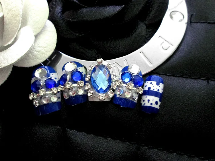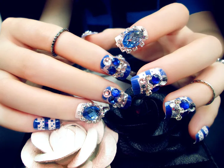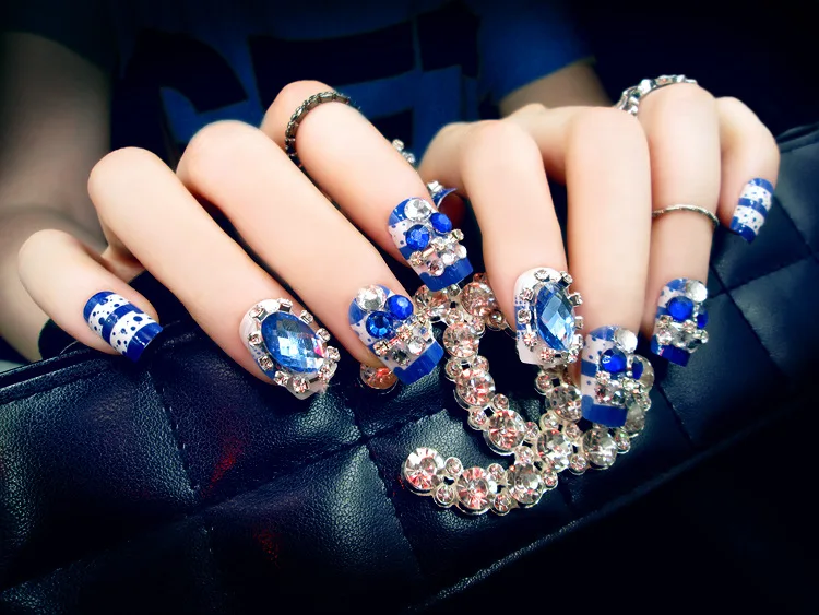 lower price New 24 pieces Bule Stone diamond Lady French 3D Fashion Style Pre-Designs Long Fake false Sticker N