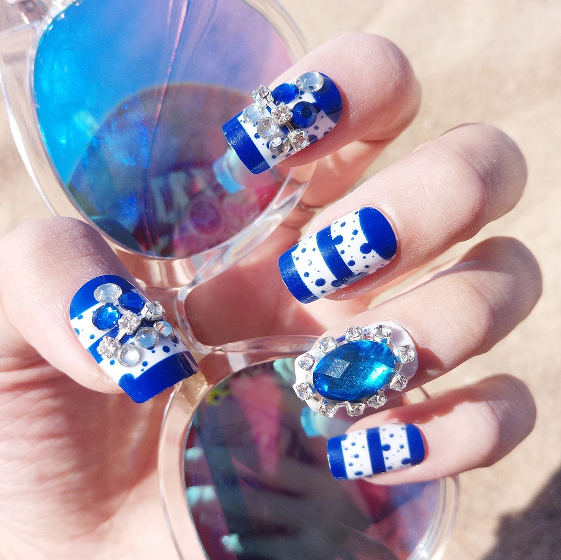 price reduction New 24 pieces Bule Stone diamond Lady French 3D Fashion Style Pre-Designs Long Fake false Sticker N