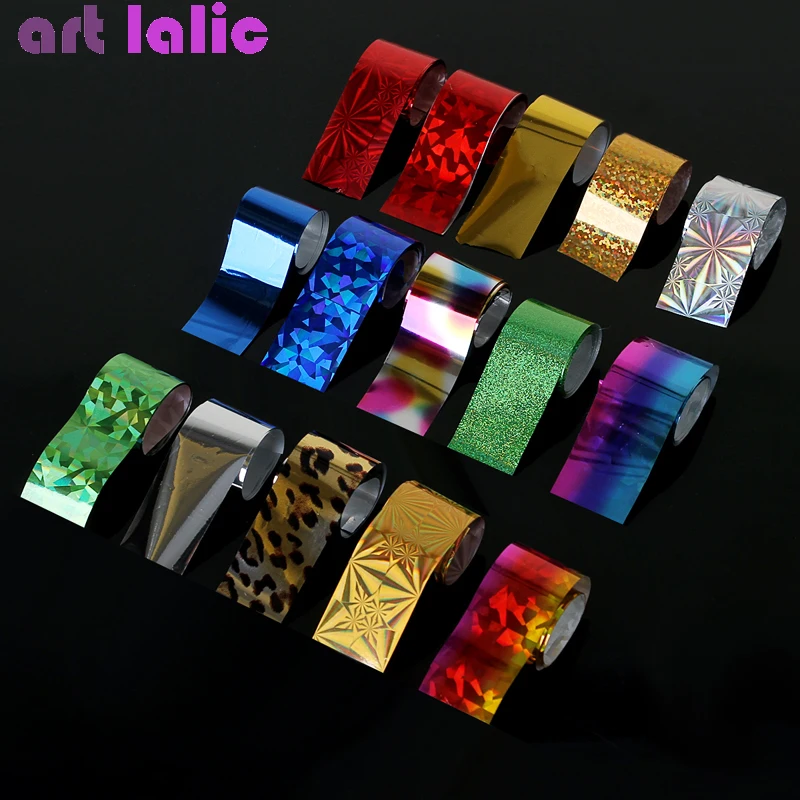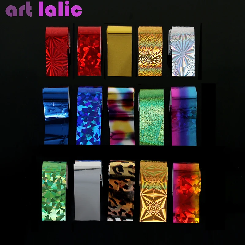 Promo 15pcs Charm Foil Set Nail Holographic Transfer Foil Wraps Sticker Decals Starry Paper Manicure Deco