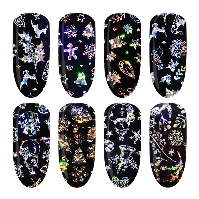 discount 4pcs Christmas Snowflake Nail Sticker+1pcs Nail Files+1pcs Wood Manicure Tool Laser Nail Art Transf