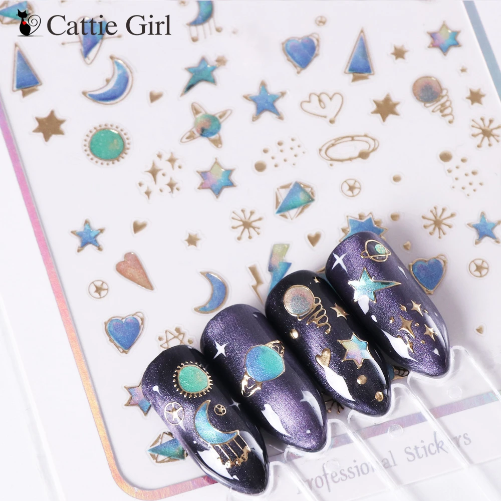 New 1 Sheet 3D Star Moon Night Nail Art Stickers Rocket Galaxy Nail Designs Japanese Nail Accessories f