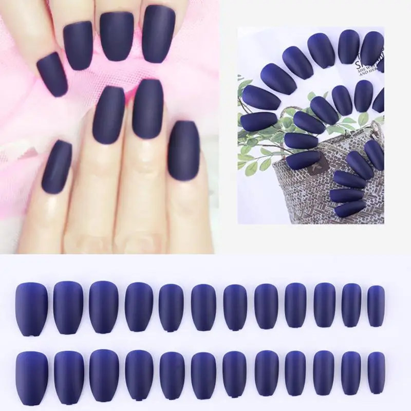 Very best 24pcs/set False Nail Tips Solid Color DIY Nail Art Tips Self-adhesive False Nail Sticker False Nail